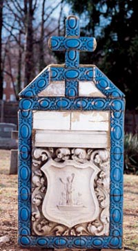 polychrome gravemarker from Hillside Cemetery. It incorporates deep blue