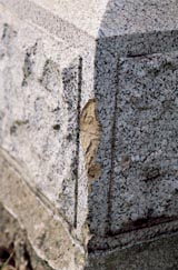 Detail of the gravemarker illustrated in fig. 17. This close up of the Halbert marker shows the terracotta body underneath the granite-like glaze.