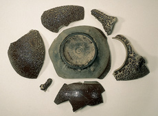 Figure 1 Sherds of a Japanese Water Drop ware teapot found in an 1870s context at the Spencer-Peirce-Little Farm, Newbury, Massachusetts. Note the charring on the base of the teapot. (Photo, Michael Hamilton.)